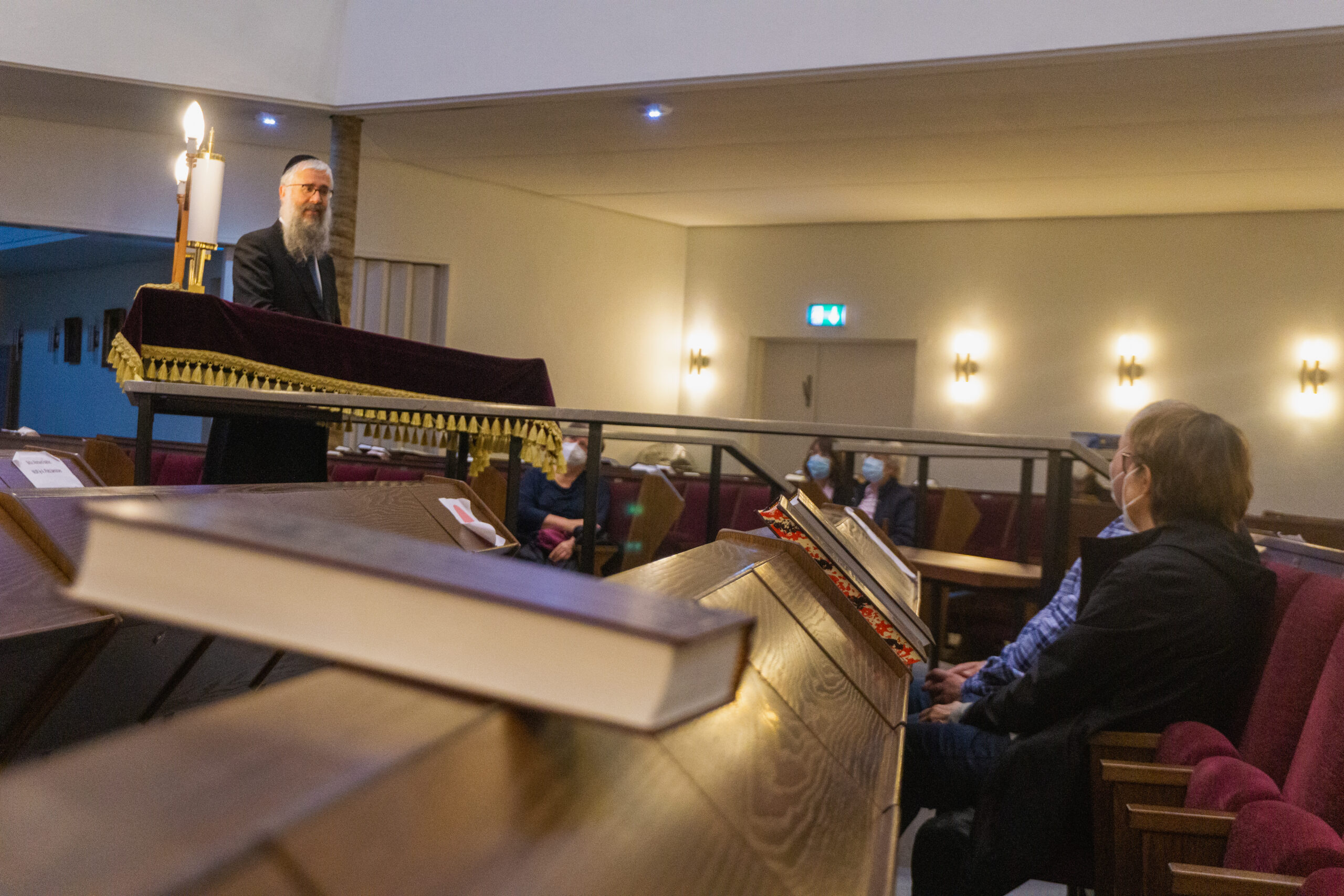 Rabbiner Shlomo Bistritzky hat es sich nicht nehmen lassen, die angemeldeten Gäste aller drei Gruppen persönlich durch die Synagoge zu führen. Corona bedingt mussten wir die Besucherzahl klein halten, aber dennoch konnten wir insgesamt 60 Menschen einen Blick in unsere Religion und Synagoge ermöglichen. Mit großem Interesse folgten die BesucherInnen den Erklärungen des Rabbiners und empfanden das Öffnen der Thorschranks als besonderen Moment. Auch die Offenheit, mit der Shlomo Bistritzky alle Fragen beantwortet hat, wurde sehr positiv aufgenommen und schaffte einen konstruktiven Dialog, also das, was wir mit der Veranstaltung gerne erreichen wollten.